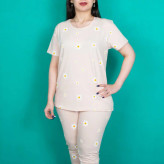 ست تیشرت شلوار زنانه قواره دار طرح بابونه 01 فری سایز سبک و راحت مارتاشاپ