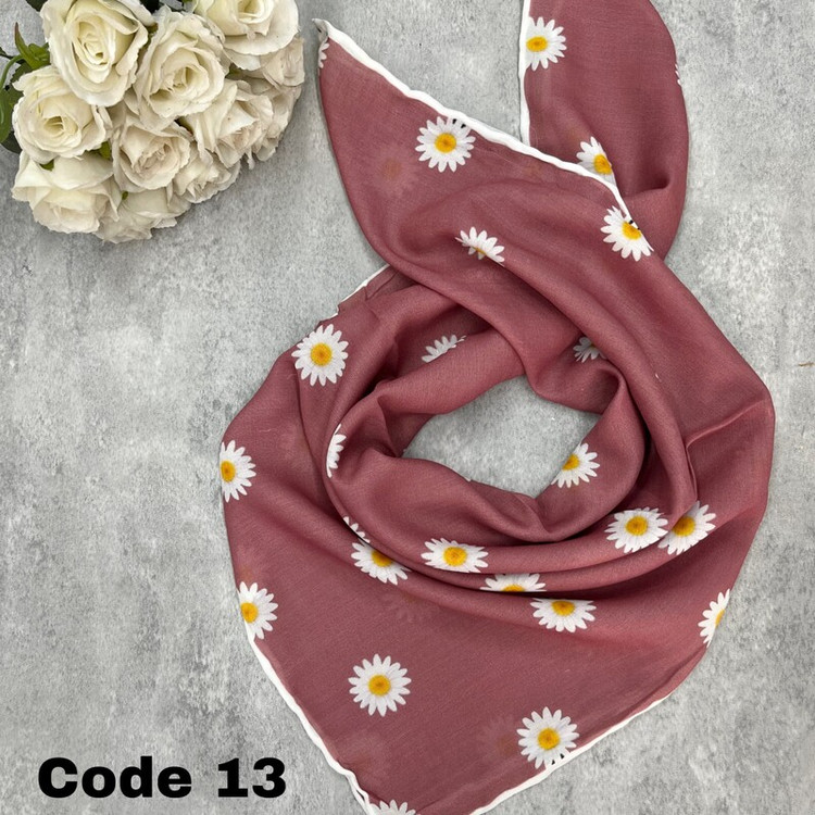 مینی اسکارف طرح بابونه دست دوز جنس نخی قواره 70 سانت ایستایی عالی |
