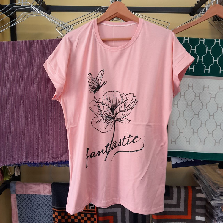 تیشرت نخی قواره دار زنانه طرح شاخه گل قد تیشرت 73 سانت سایز بزرگ مناسب تا سایز 50 |
