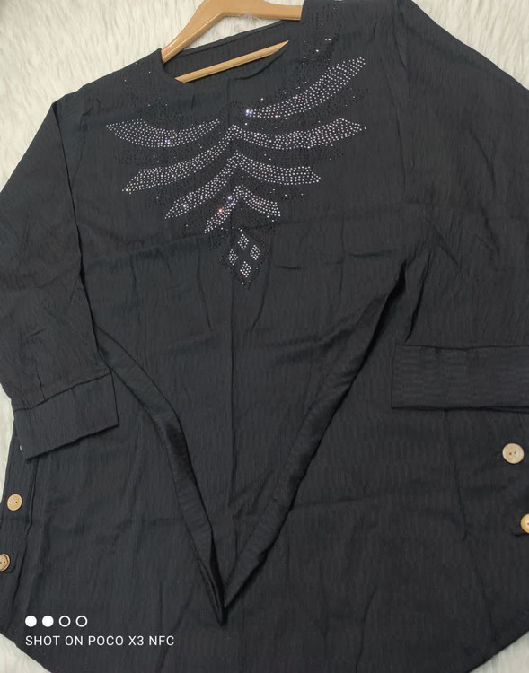 تونیک زنانه مشکی جنس نخ کرسپو بدون آبرفت و سایه انداختن قد تونیک 80 سانت قد آستین 42 سانت |