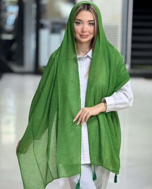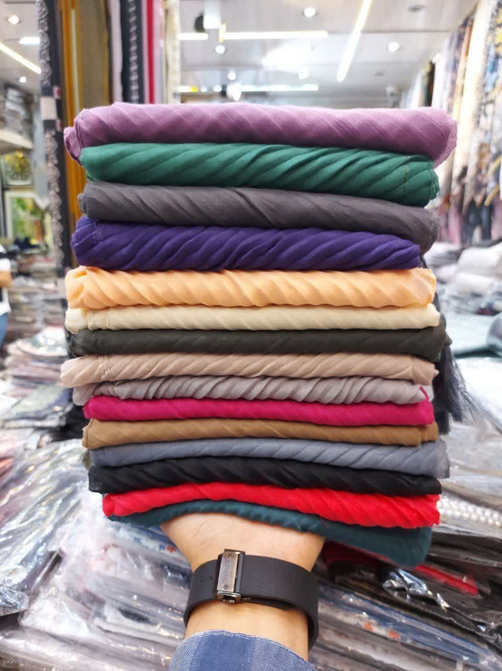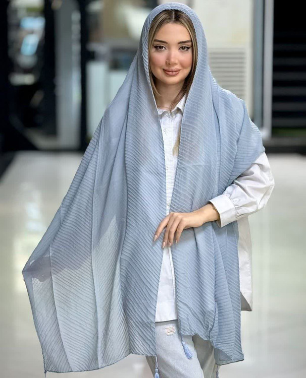 شال زنانه طرح پلیسه بهاره رنگبندی جین 10 عددی ایستایی عالی