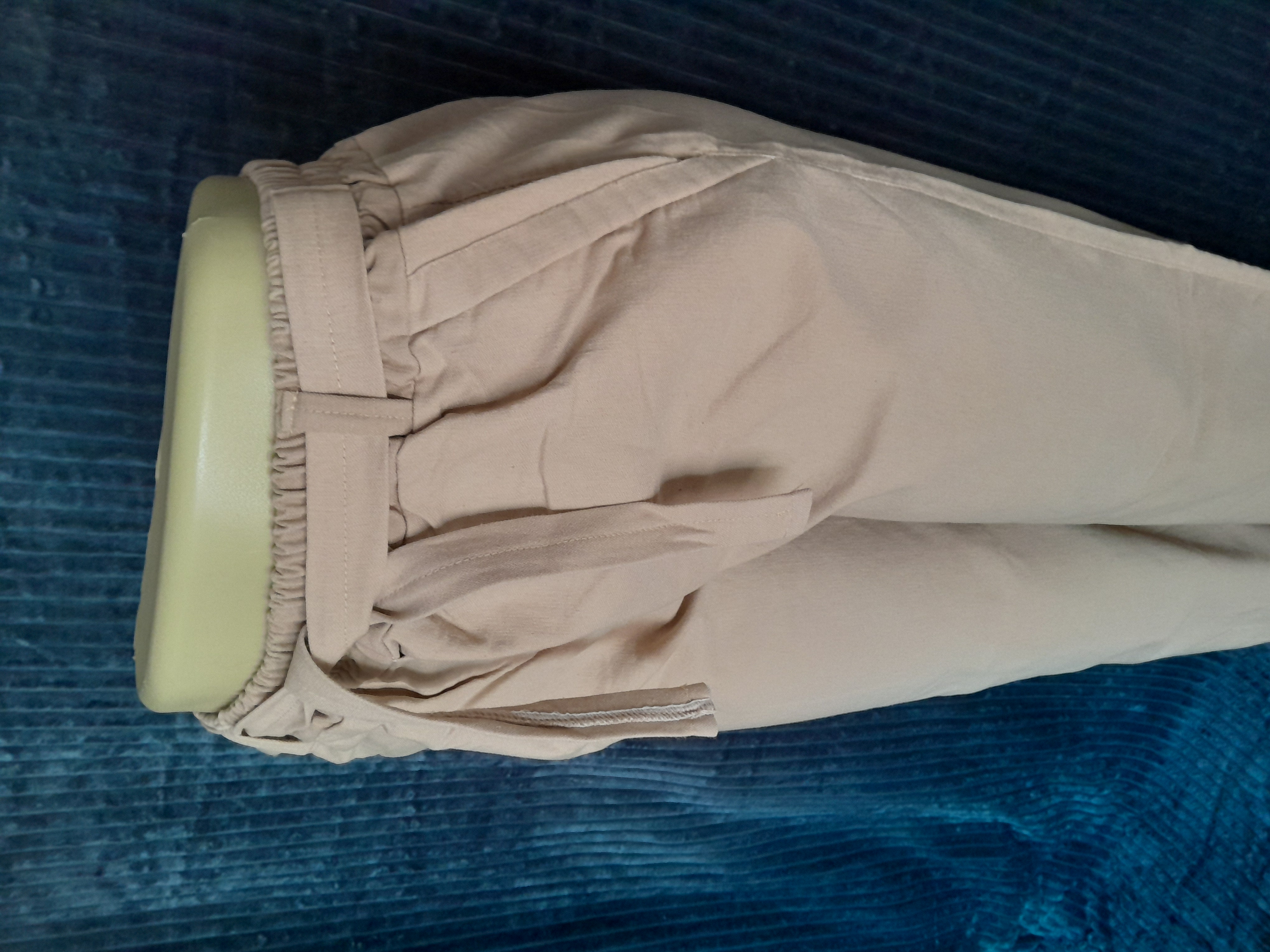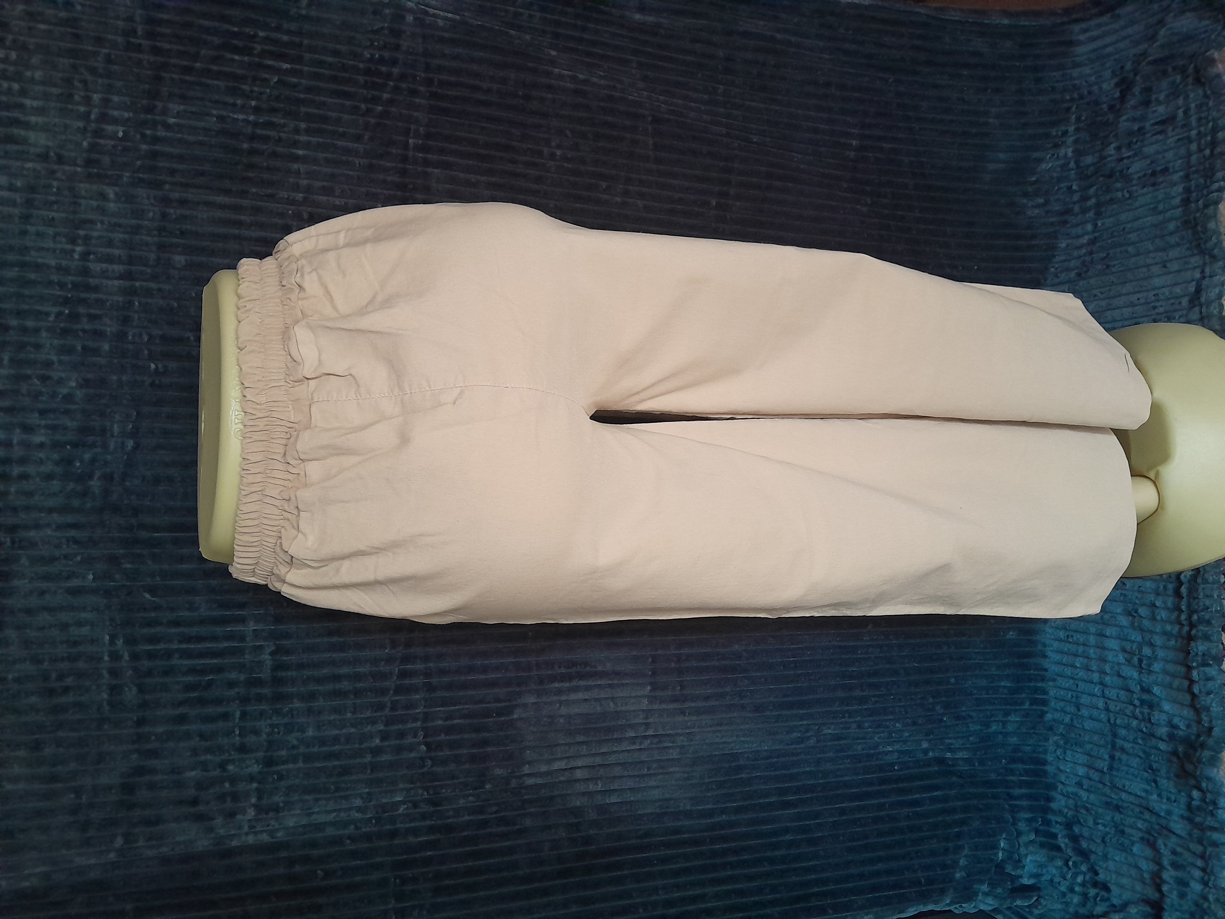 شلوار زنانه جین بگ کمر کش رنگ کرم مارتاشاپ